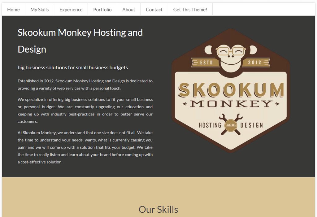 If you like what you see, find out how to get this demo or order your own custom theme from Skookum Monkey.